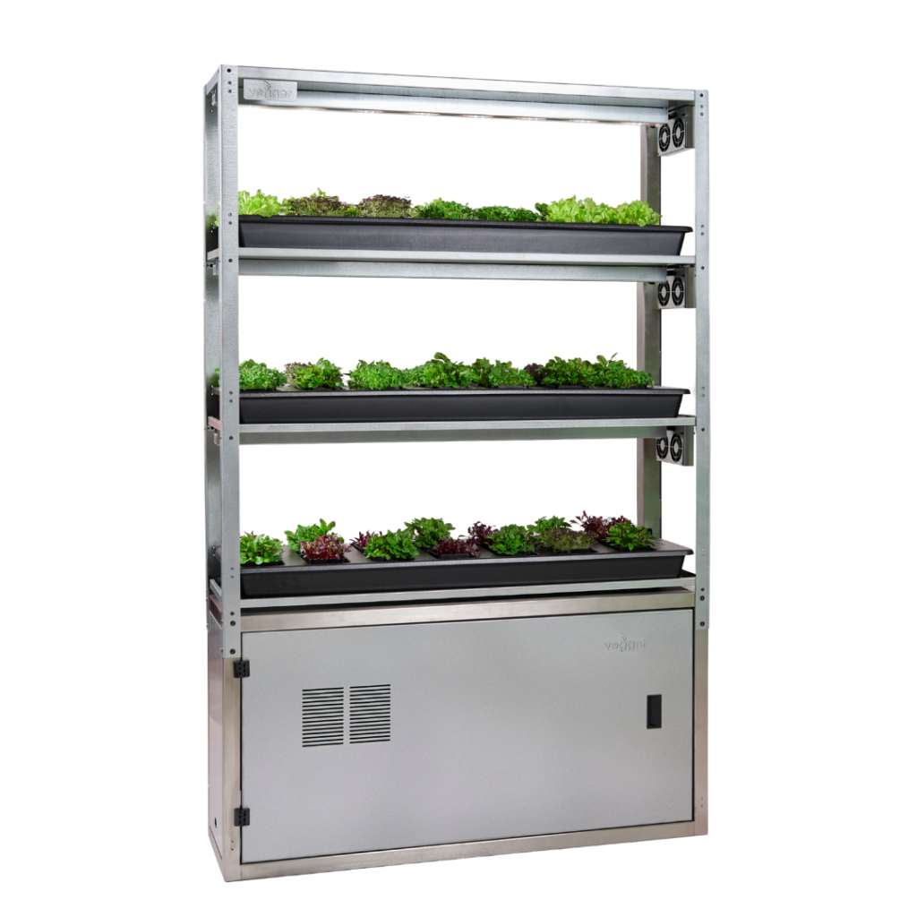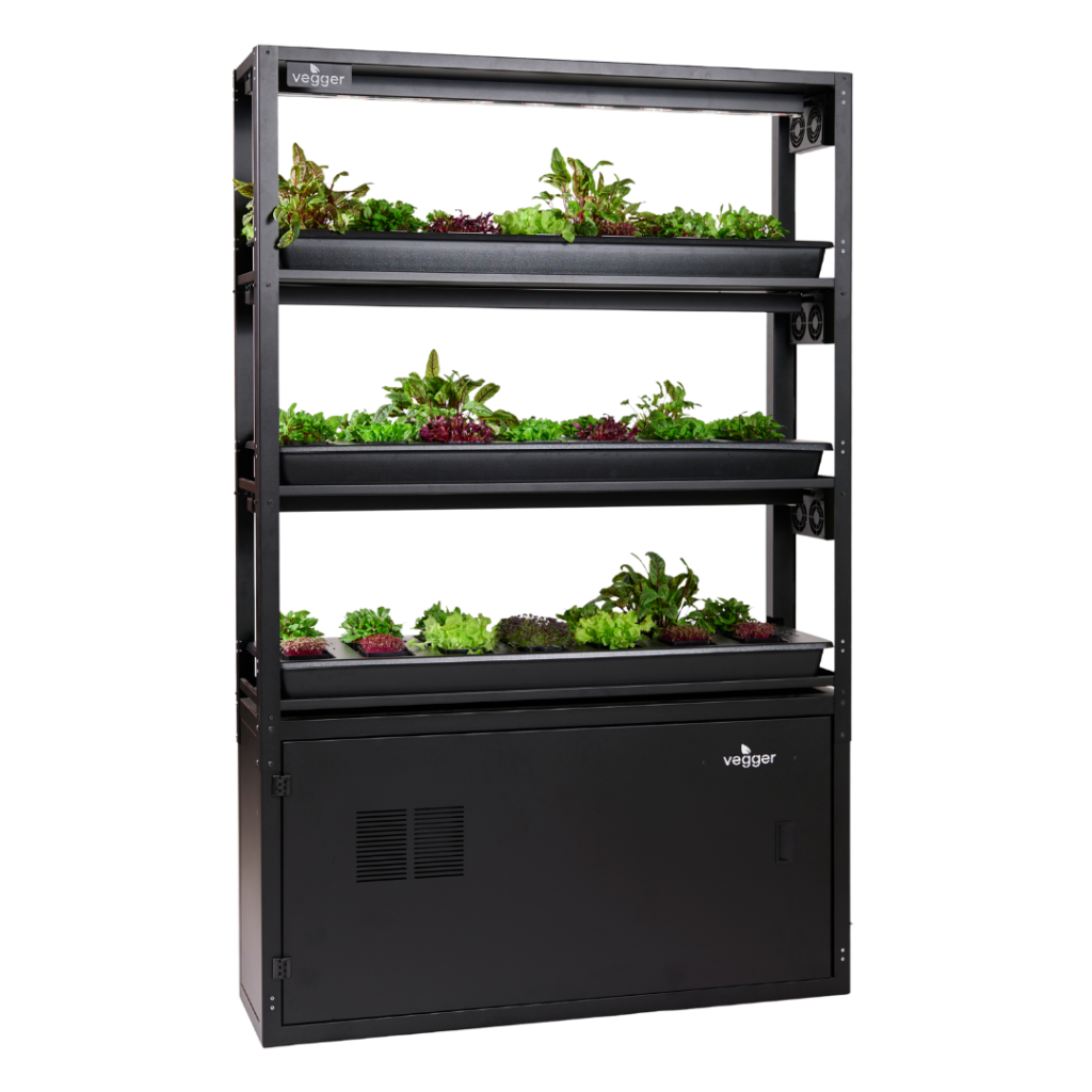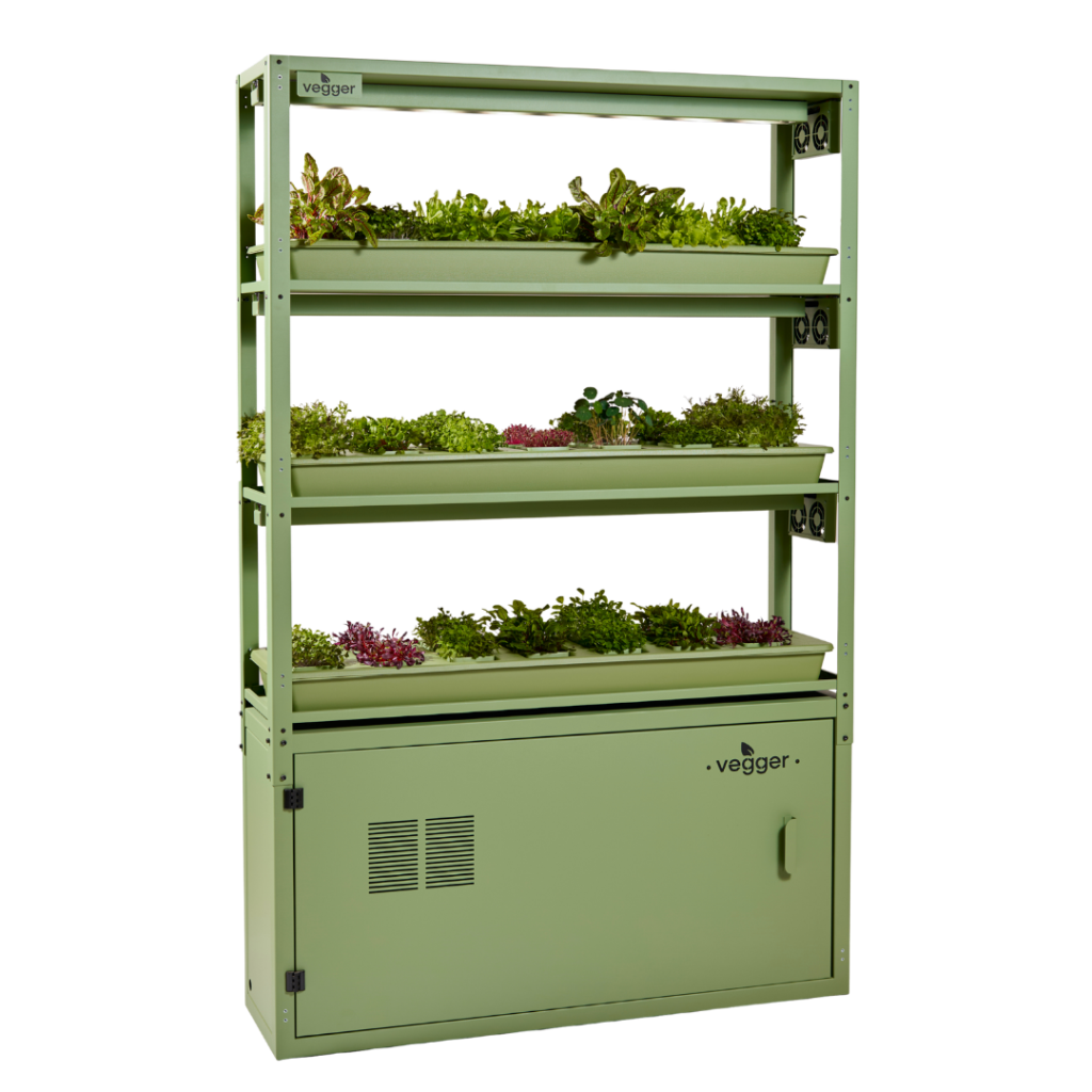 Vegger is a plug-and-play system. It uses simple plugs for power and water pipes, so setting it up is fast and easy.